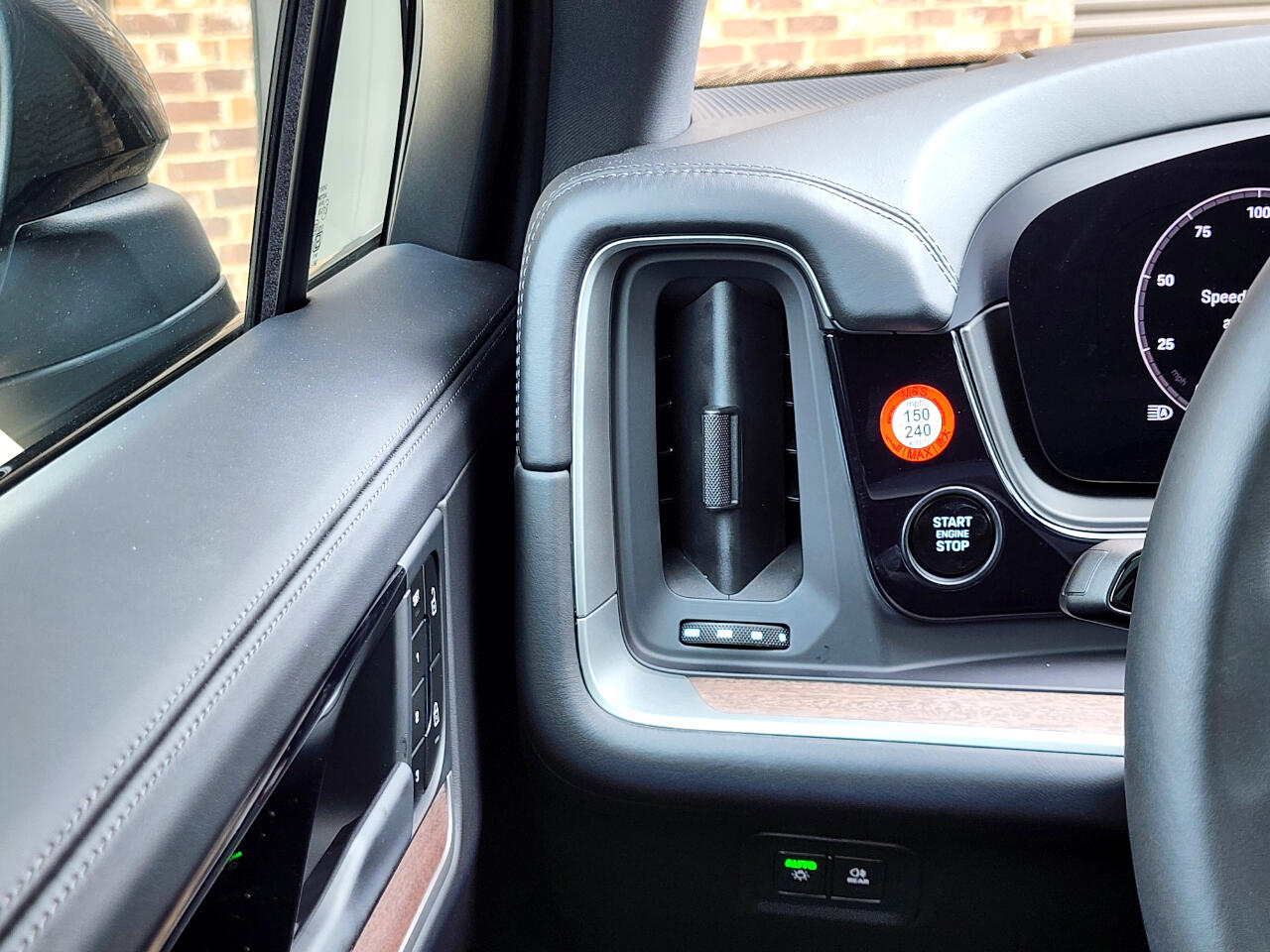 Center console armrest with model designation.