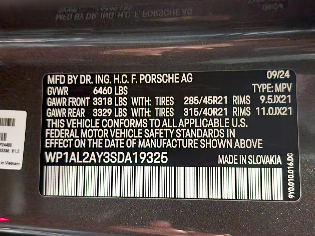 Vin WP1AL2AY3SDA19325.