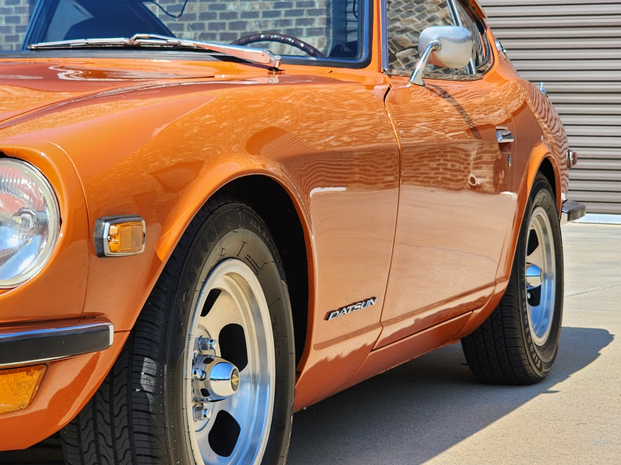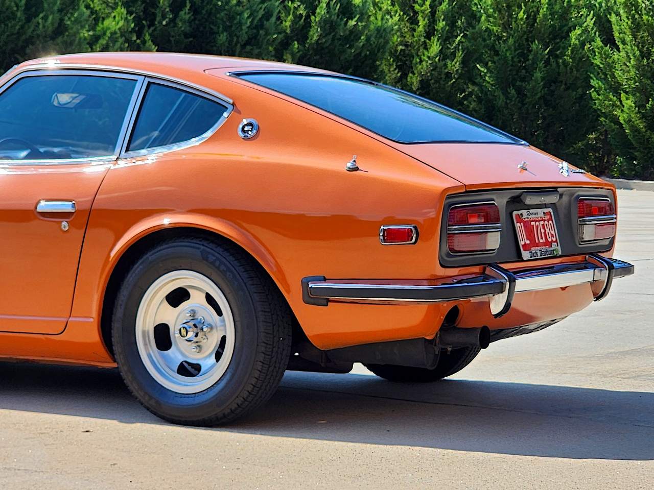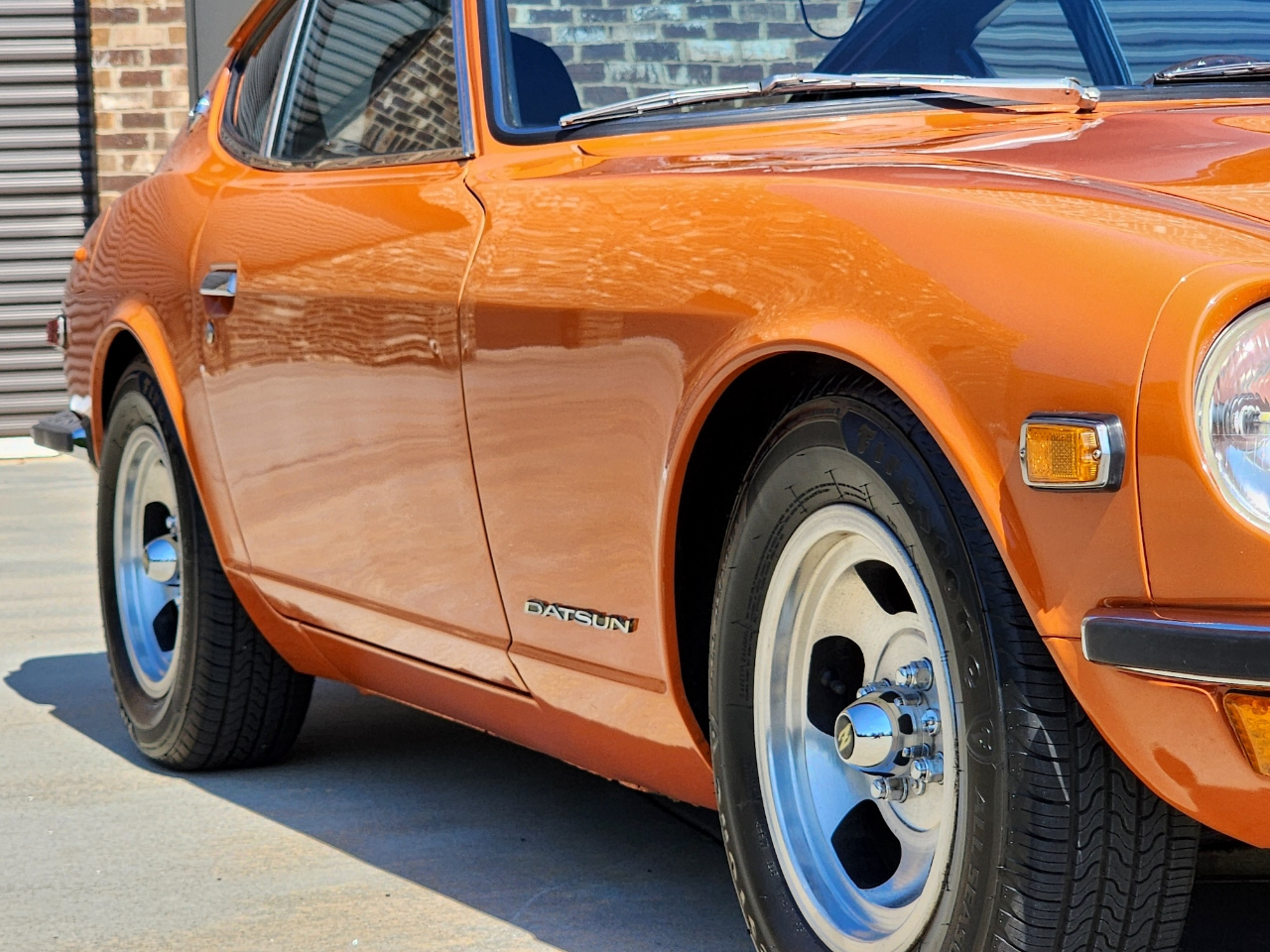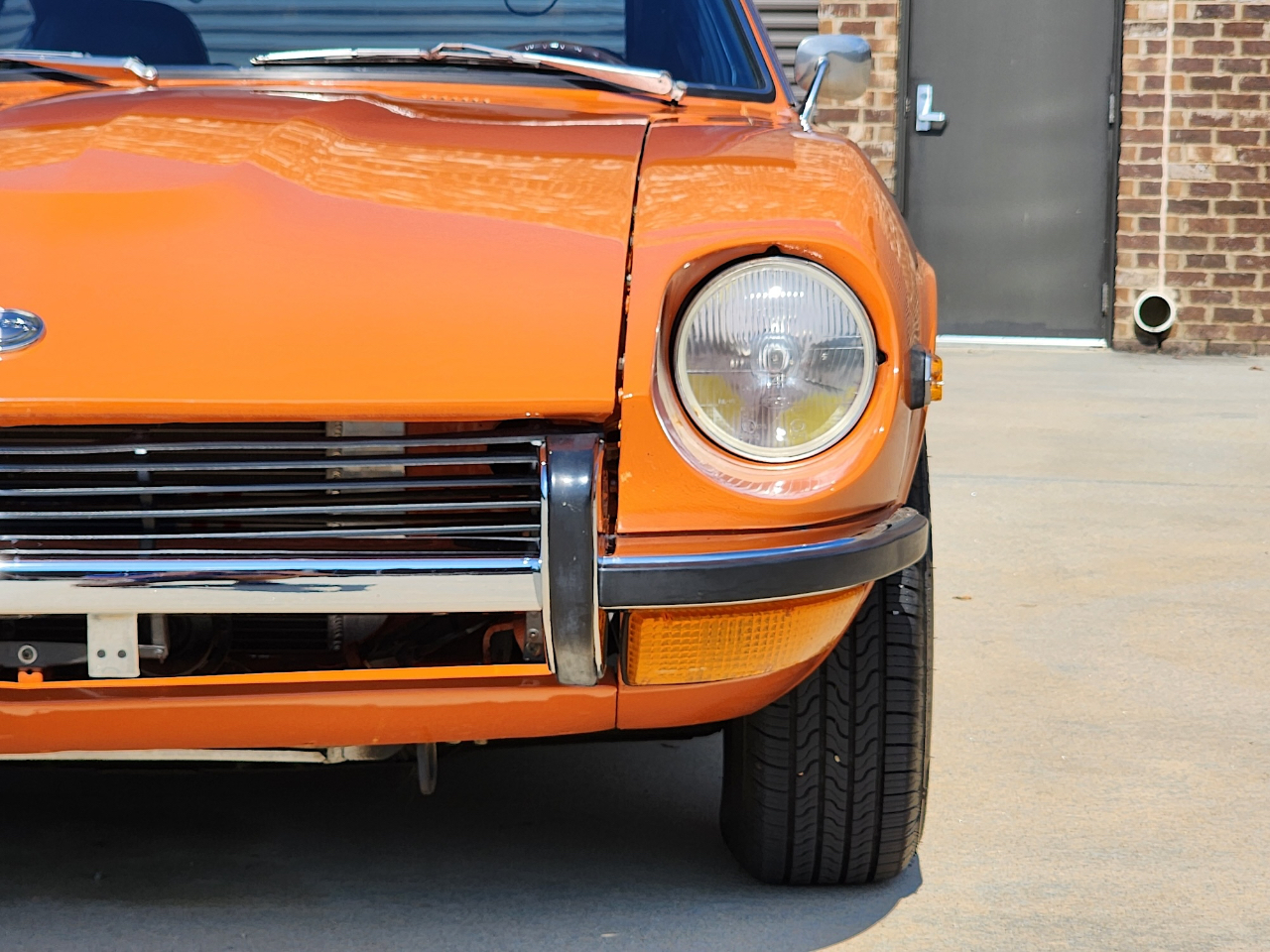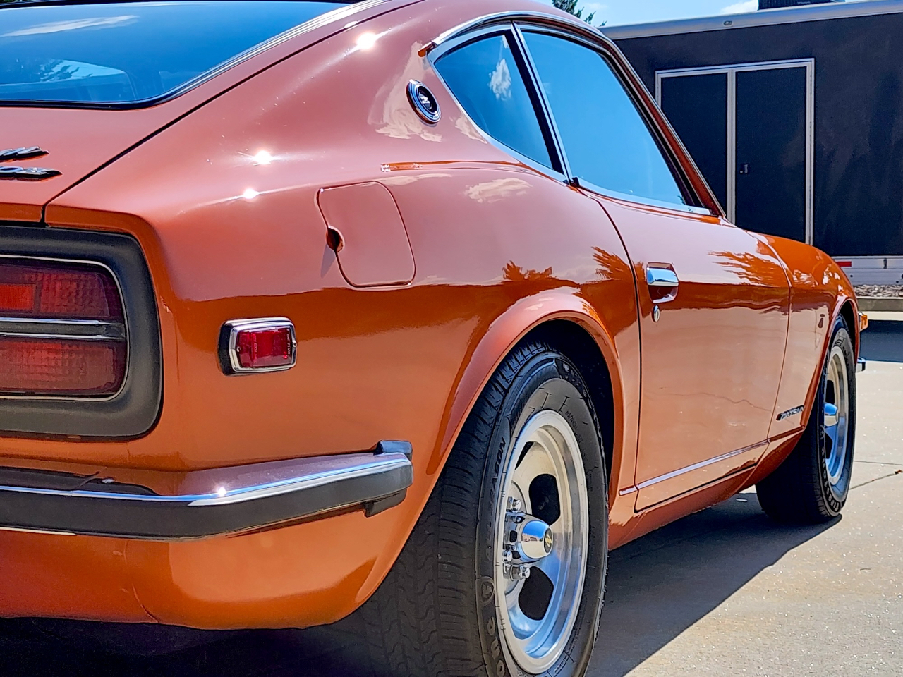 The overall condition of this 240Z is quite nice. The car has been repainted a few years back in its original matching New Sight Orange. The exterior is very glass-like with no pitting on the chrome pieces.
