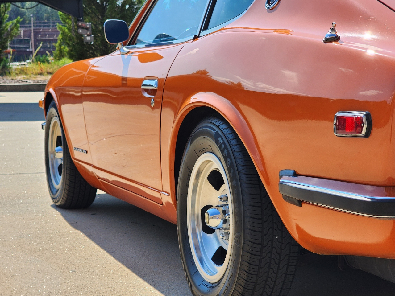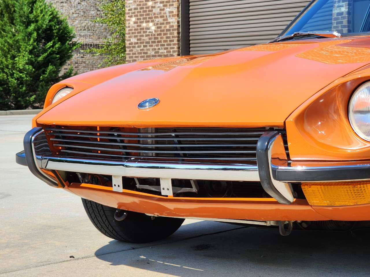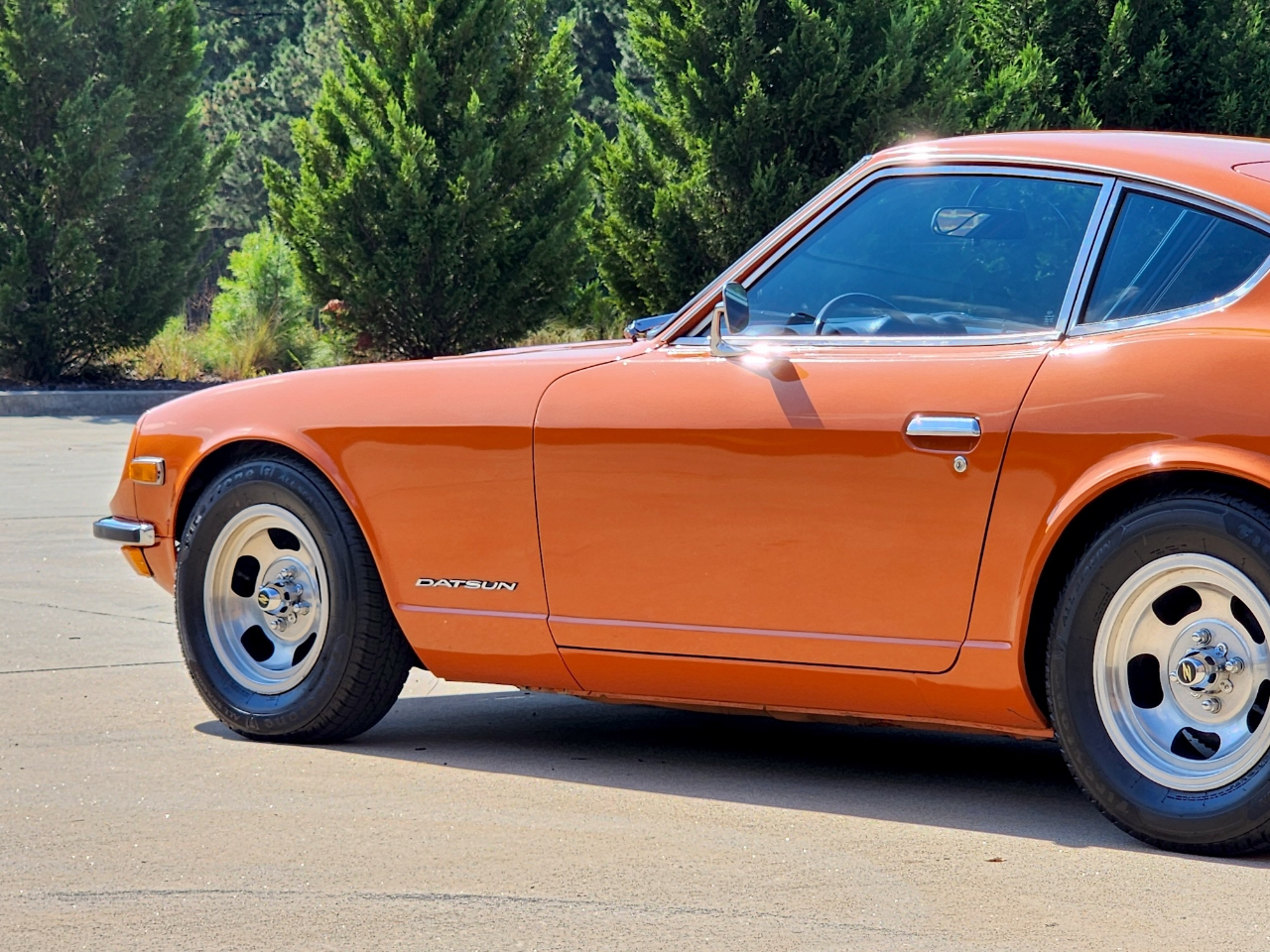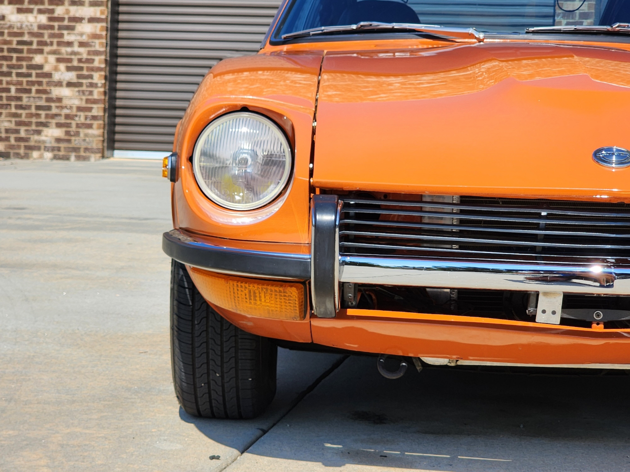 The overall condition of this 240Z is quite nice. The car has been repainted a few years back in its original matching New Sight Orange. The exterior is very glass-like with no pitting on the chrome pieces.