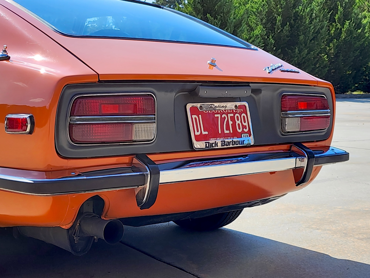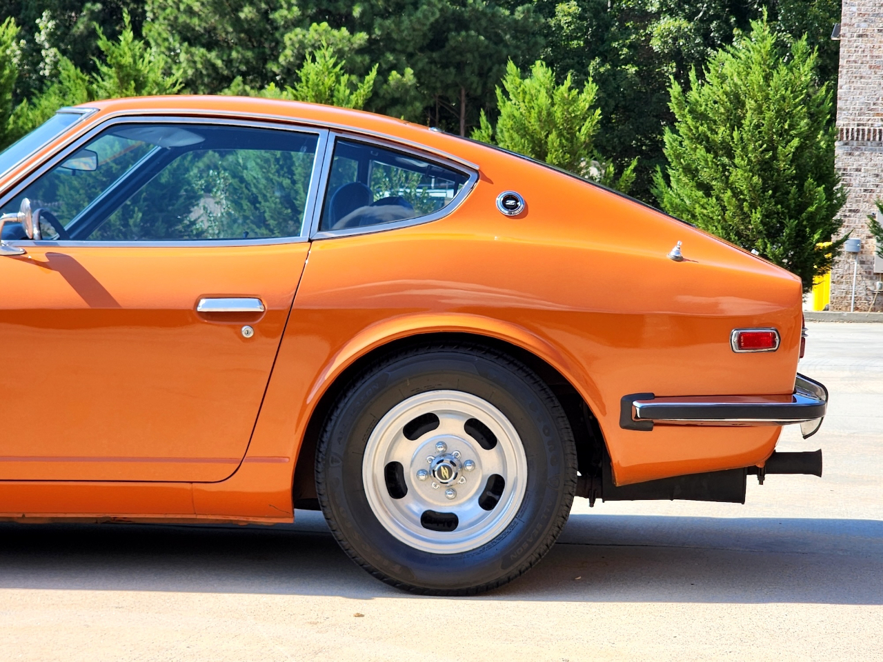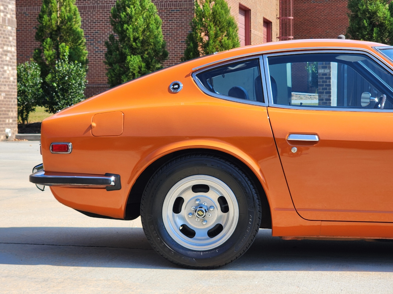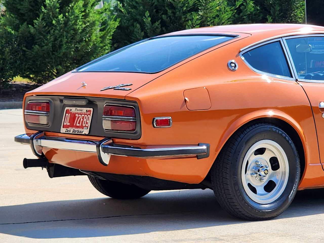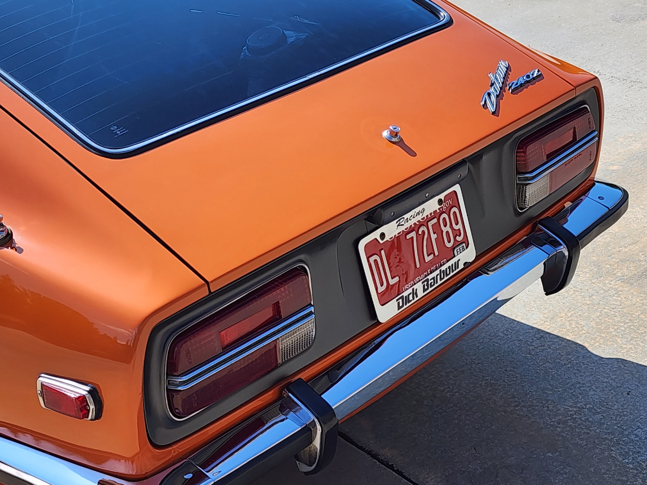 The overall condition of this 240Z is quite nice. The car has been repainted a few years back in its original matching New Sight Orange. The exterior is very glass-like with no pitting on the chrome pieces.