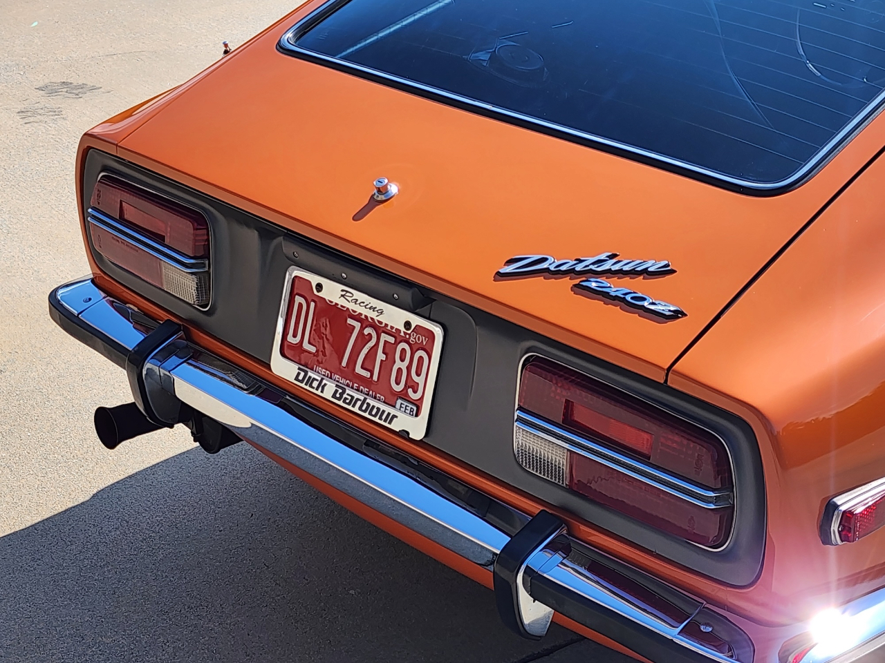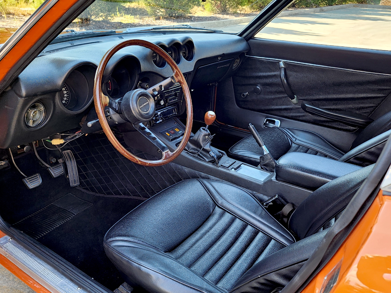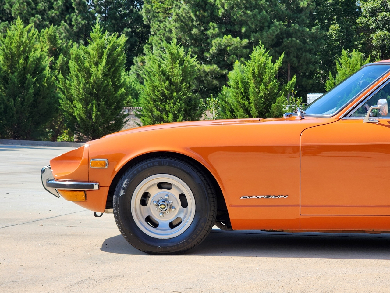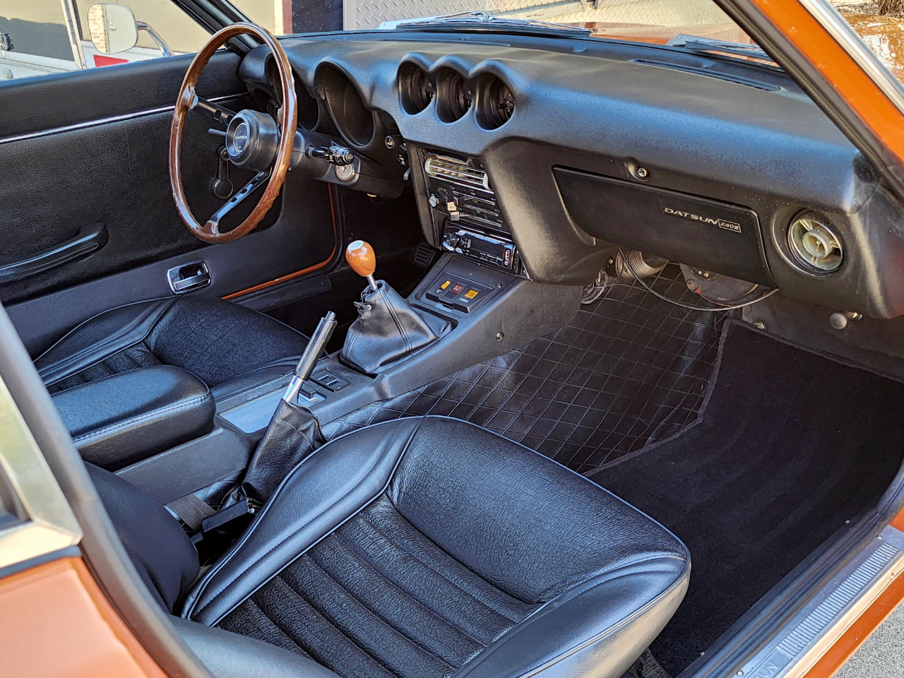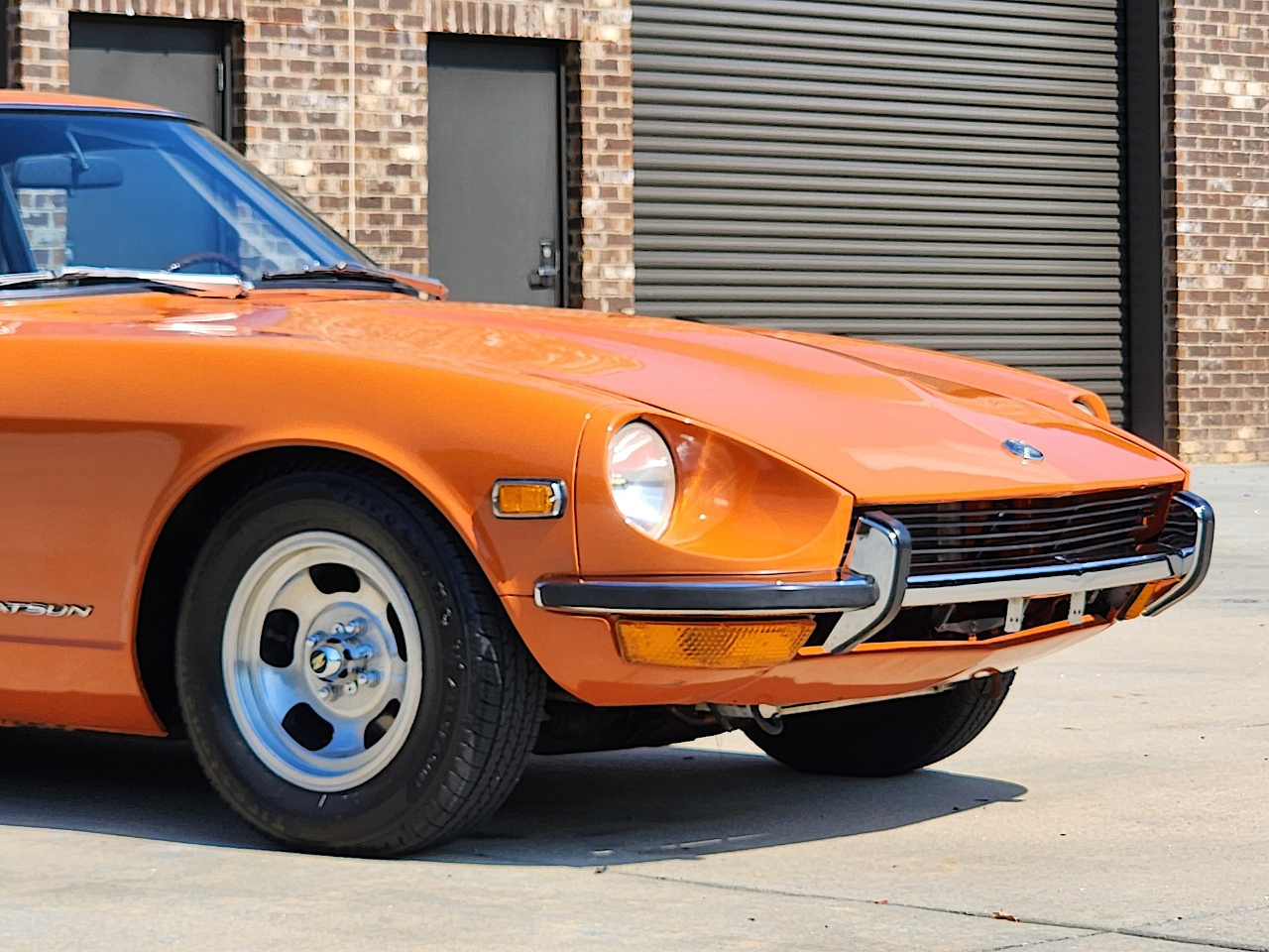 The overall condition of this 240Z is quite nice. The car has been repainted a few years back in its original matching New Sight Orange. The exterior is very glass-like with no pitting on the chrome pieces.