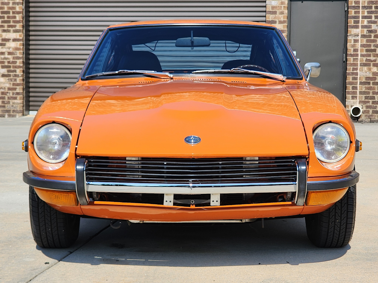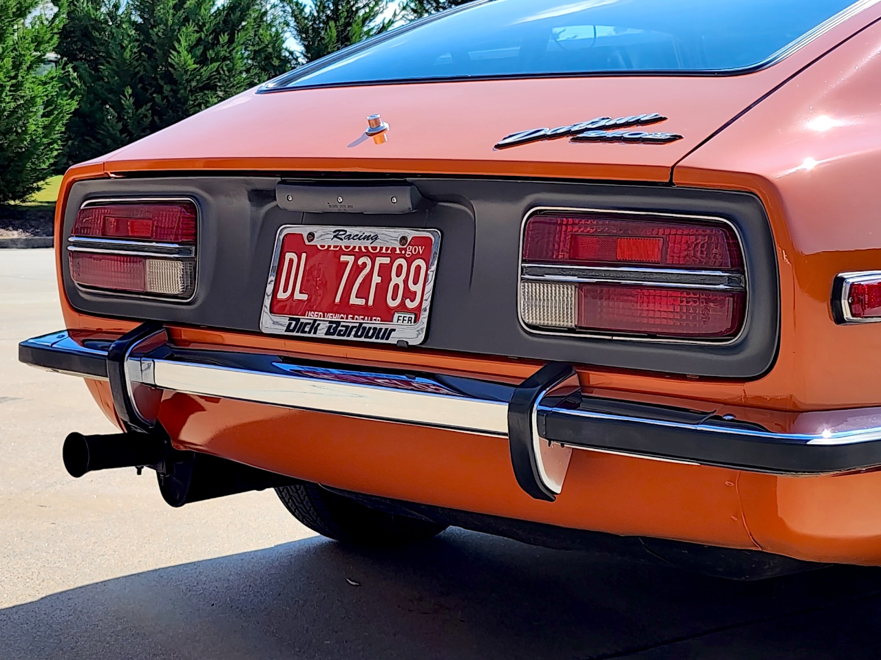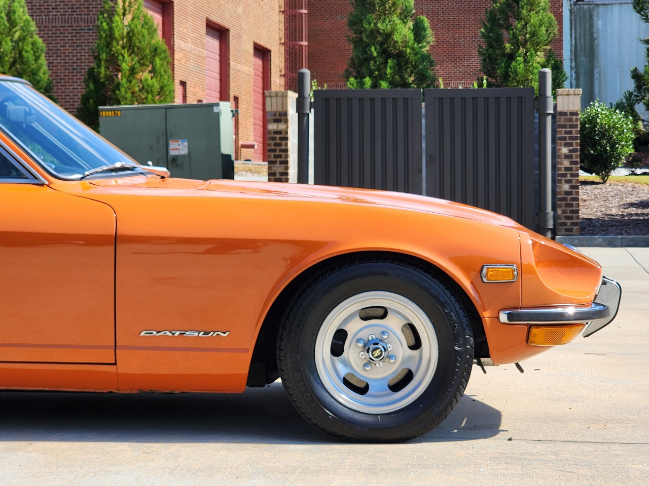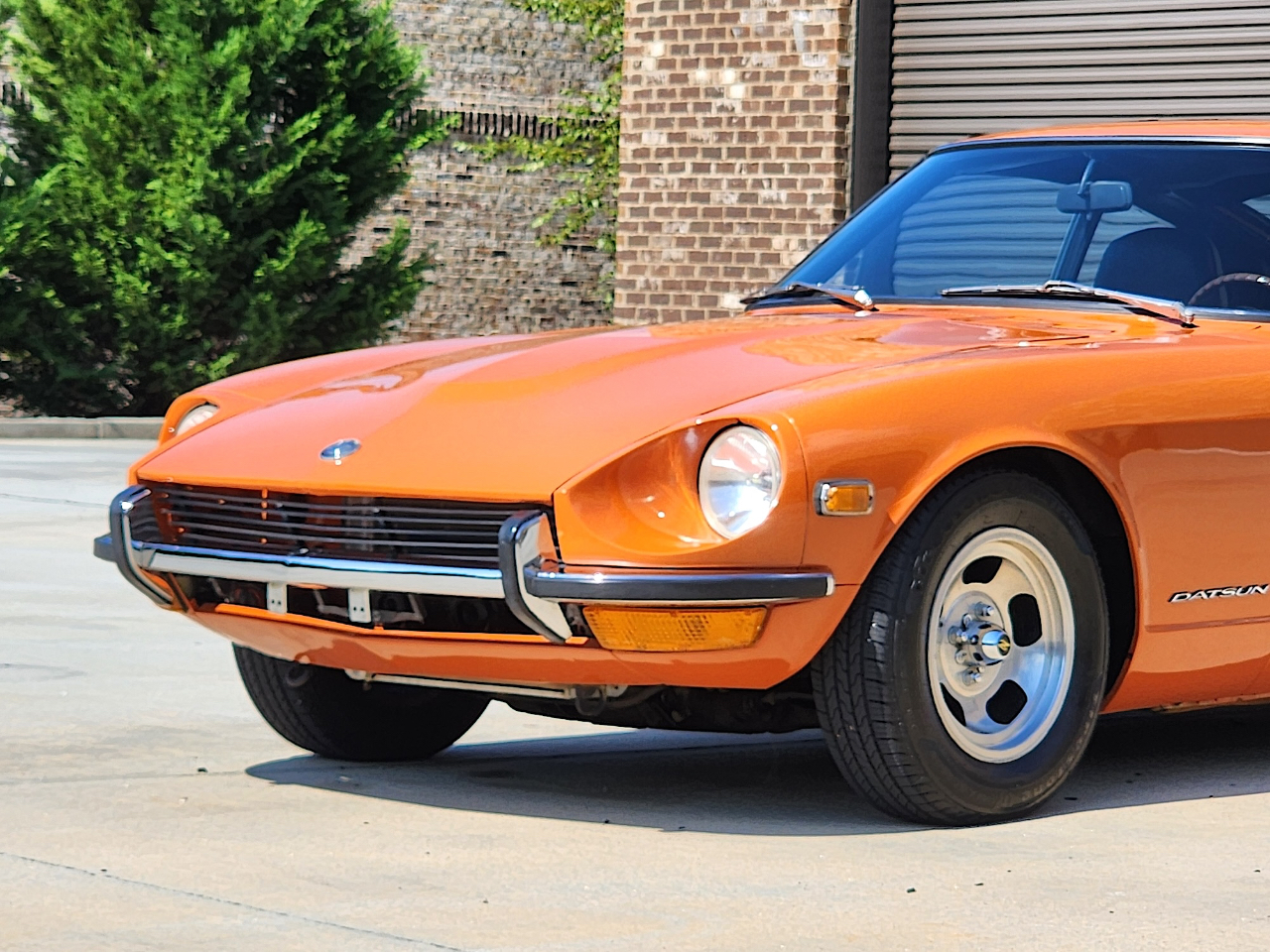 The overall condition of this 240Z is quite nice. The car has been repainted a few years back in its original matching New Sight Orange. The exterior is very glass-like with no pitting on the chrome pieces.