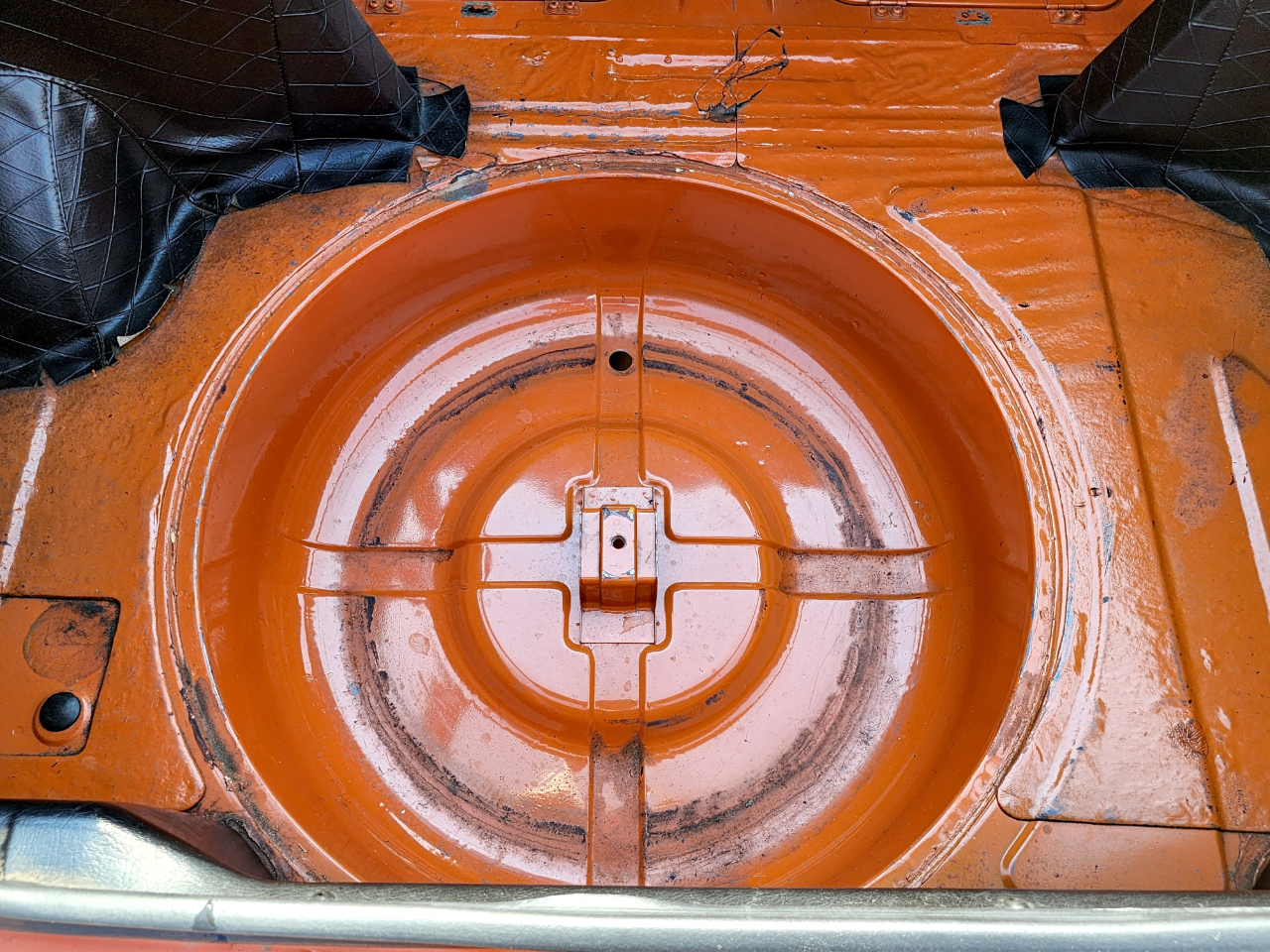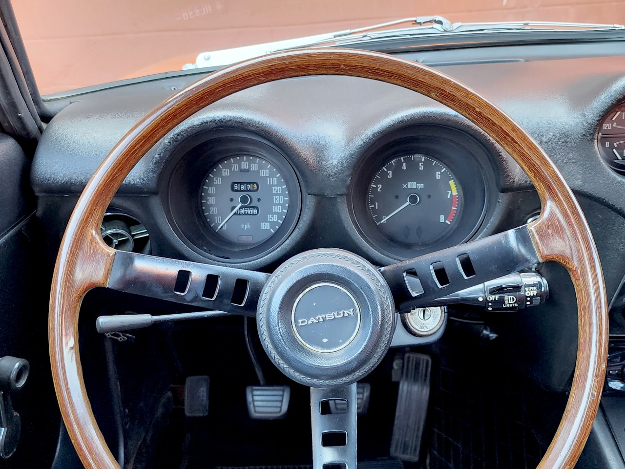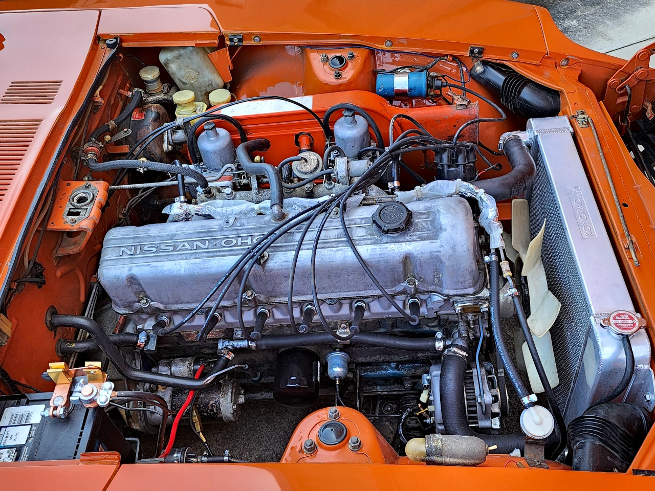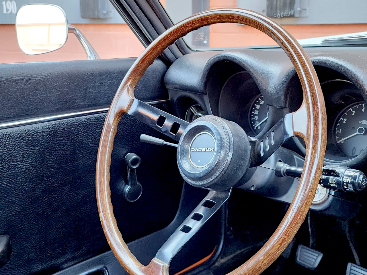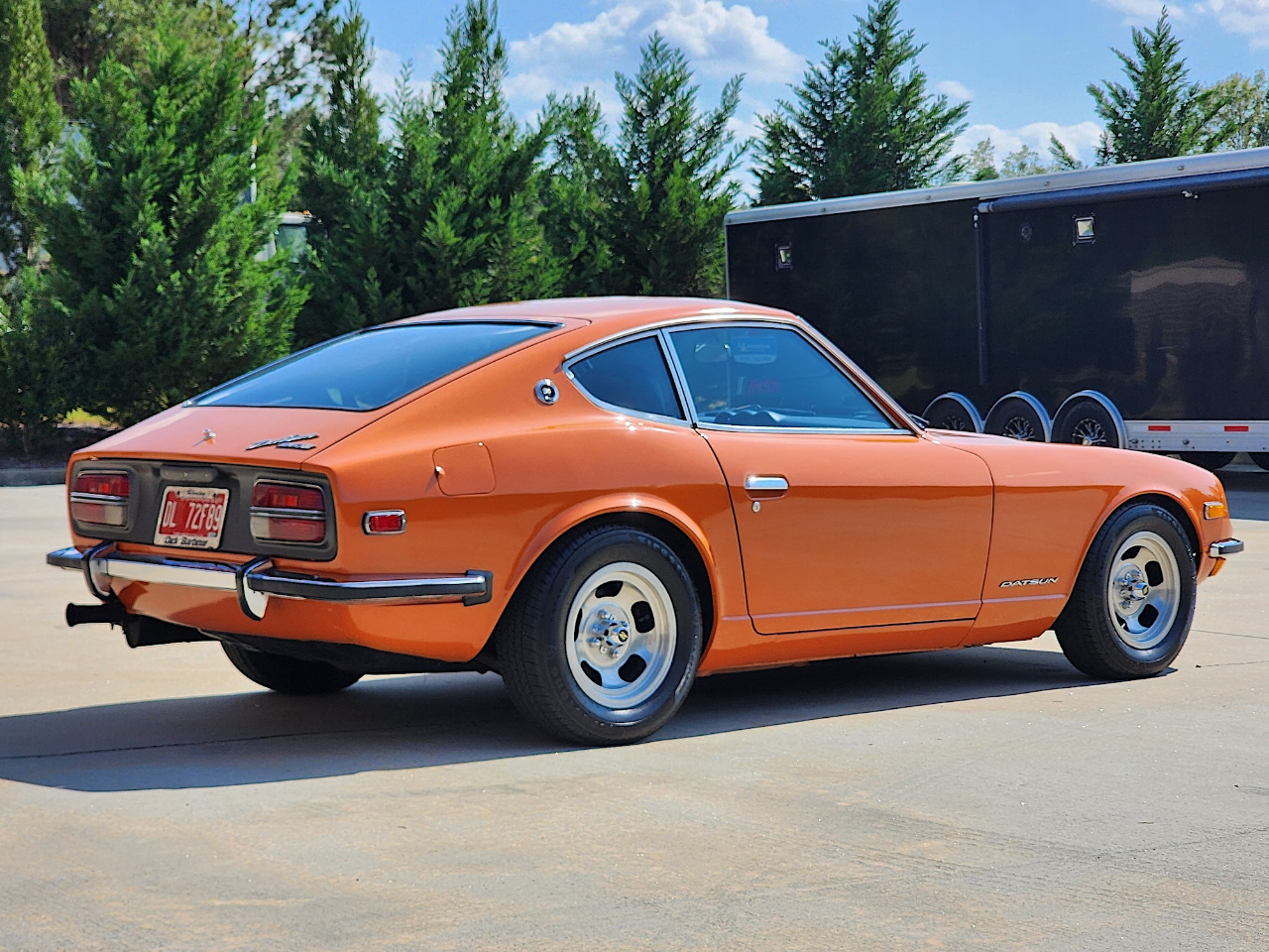 The overall condition of this 240Z is quite nice. The car has been repainted a few years back in its original matching New Sight Orange. The exterior is very glass-like with no pitting on the chrome pieces.