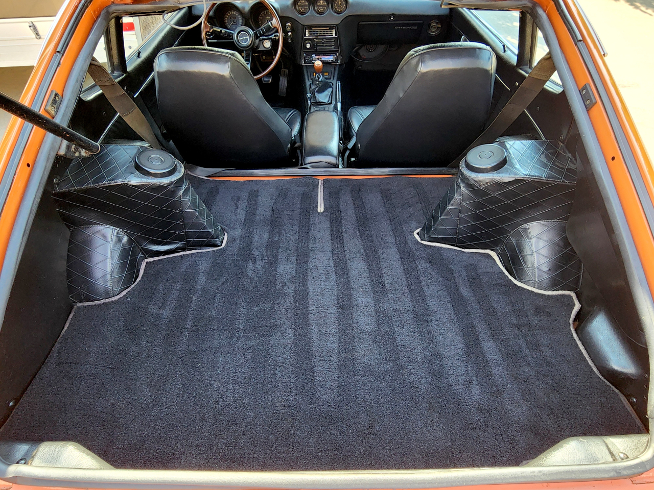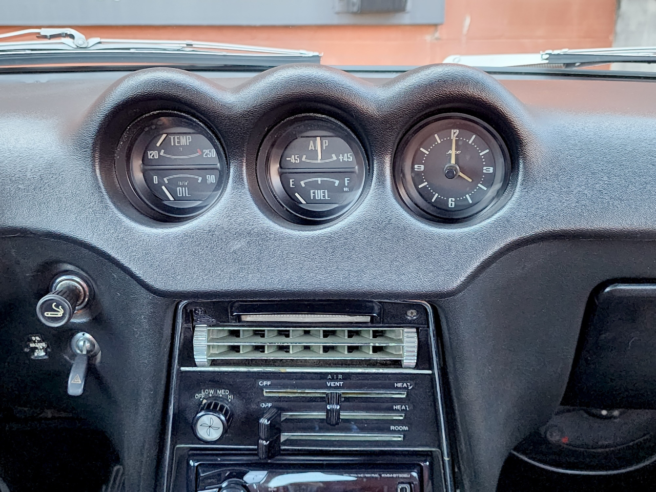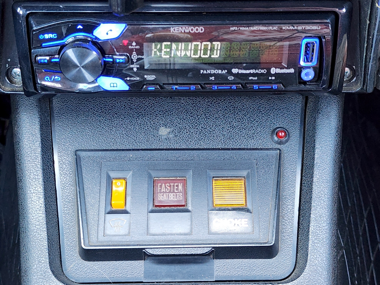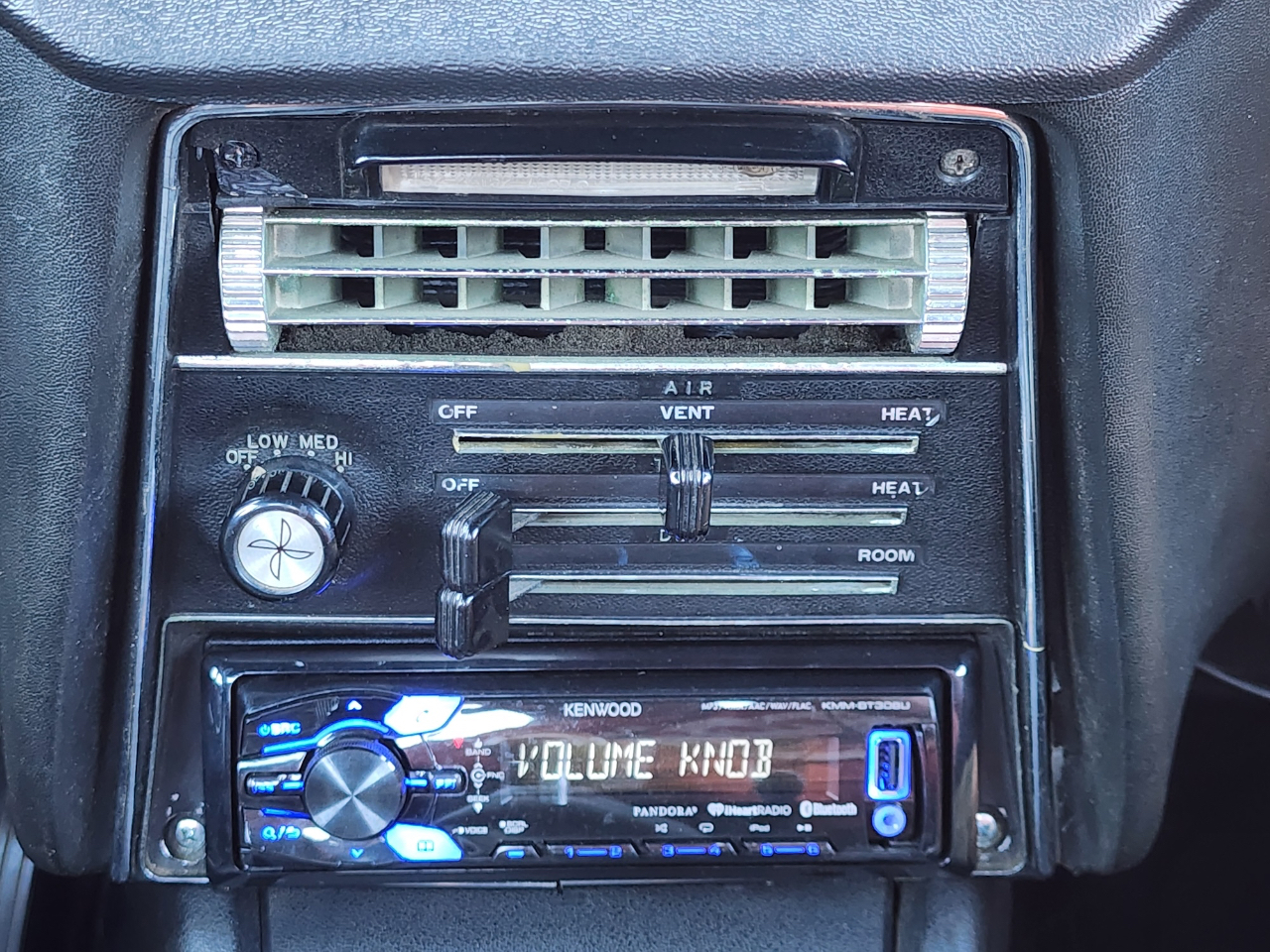 The black interior has been nicely kept, and everything is in good condition. The seats have been refurbished in the past, and are in top shape. The interior and the carpeting throughout is clean and tear free, as is the headliner. The original radio has been replaced with a modern Kenwood unit, which sounds great.